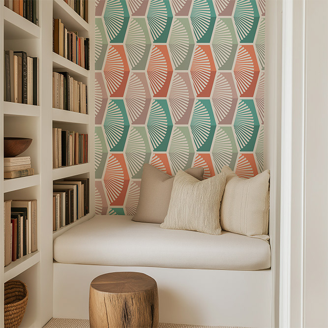 🌴Bring a touch of Palm Springs chic to your space! A geometric wallpaper with warm, inviting, sunny colors and full of personality, making it a versatile choice from accent walls to classic living spaces.